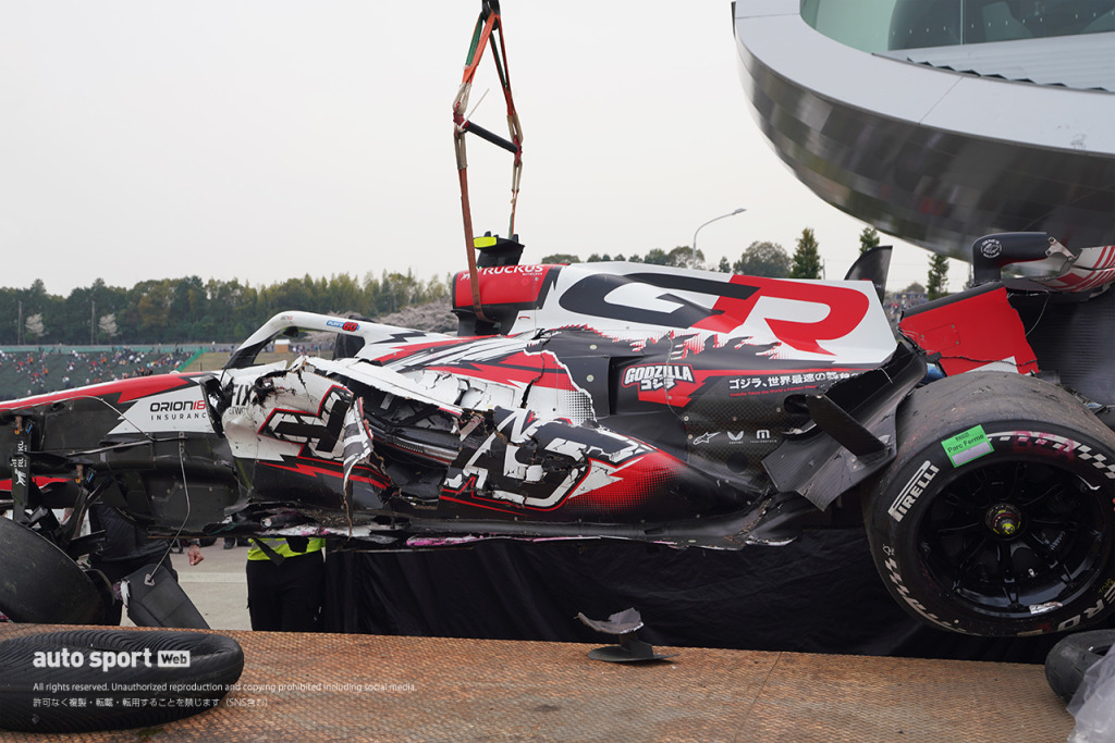 2026年F1第3戦日本GP 決勝でクラッシュしたオリバー・ベアマン(ハース)のマシン